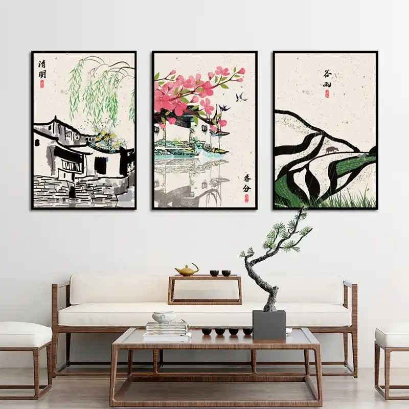 Home Decoration Chinese Style Retro Building Eaves Ridge Drawing Living Room Background Wall Hanging Picture Frameless Painting Calligraphy Aliexpress