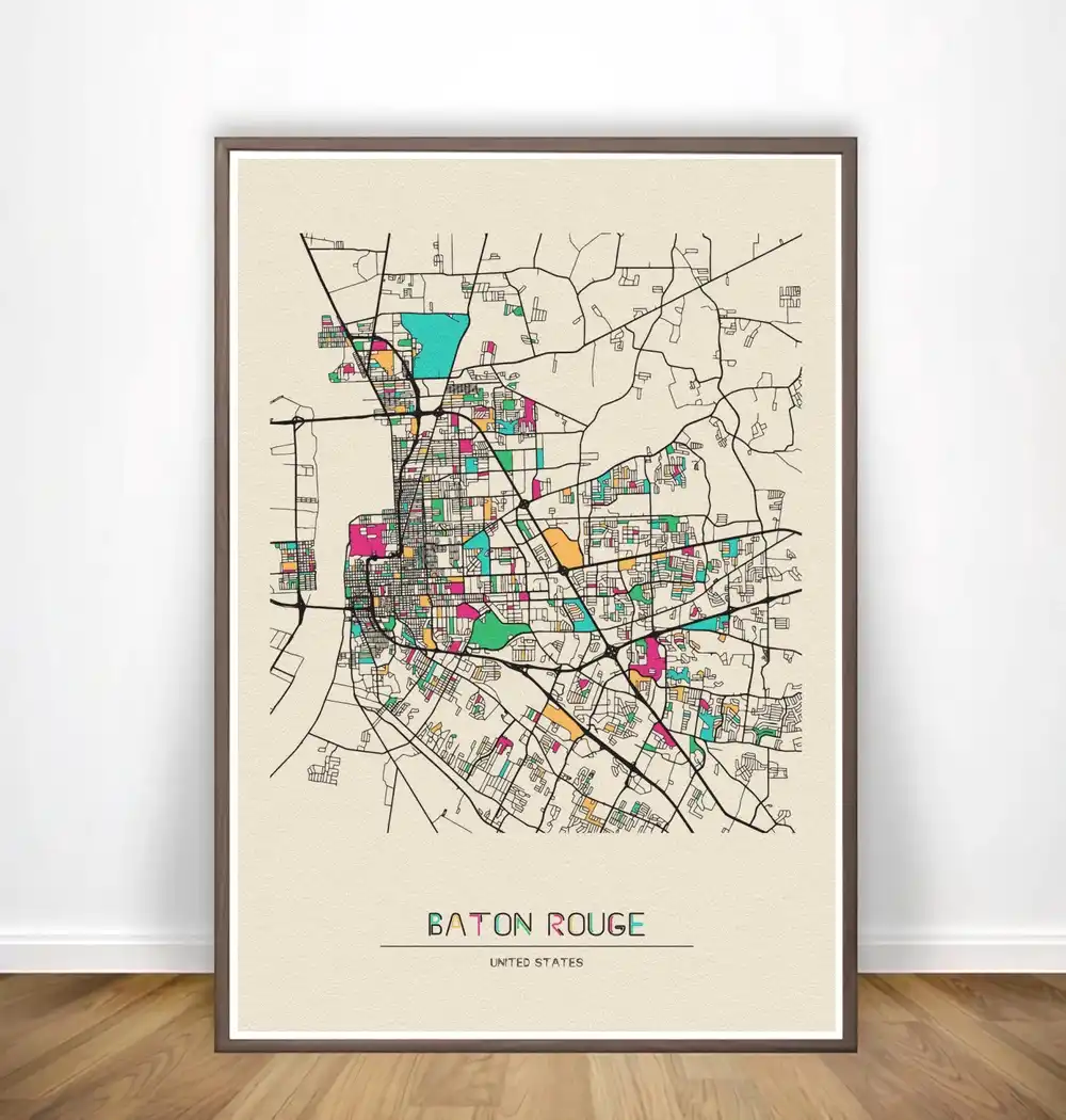 Baton Rouge Map Poster Print Wall Art Louisiana Gift Printable Home And Nursery Modern Map Decor For Office Map Art Map Gifts Poster By Marzzgraphics Redbubble
